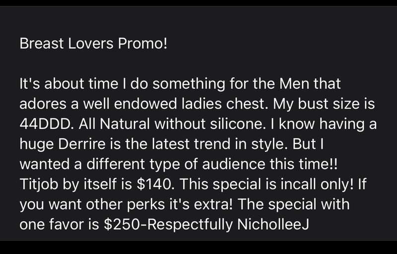 Please do not start off your conversations with me by saying " HEY" OR " LOCATION" or " RATES" A true gentleman introduces himself and politely askinghow we can meet. If you are a new client and this is the first time you have seen me. Since this is officially year 2022. Im only offering two services only to the new clientele I have never seen. Option A is going to be the Breast Lovers Promo. Option B is going to be the erotic Nuru Shower with the back body scrub and companionship for 90 minutes. If you are a client and Ive seen you this entire time all the other services are still available to you only. As for my Outcall $400 it will remain the same. The only form of payment Im going to be taking are going to be Cash, Zelle and Apple Pay. Thank you for understanding. |